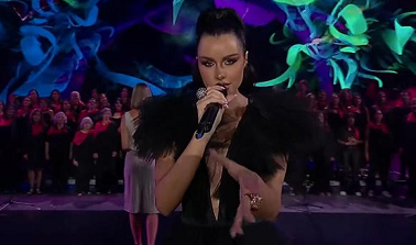 En ello, la Miss Chile sacó toda su faceta de cantante y realizó un emotivo homenaje al fallecido Zalo Reyes junto al pianista Boris González, nieto del cantante que nos dejó hace algunos años. Además, cantó canciones de Los Ángeles Negros y Cecilia.