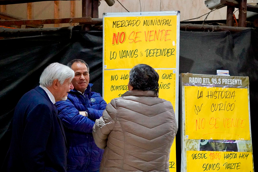 “Estamos aquí en el Mercado Central de Curicó desde el año 1945 con la directiva de todos los locatarios. Y hemos escuchado sus inquietudes, preocupaciones, especialmente la falta de inversión en reparación, a pesar de que las rentas que pagan mensualmente hay un capítulo especial sobre la retención del 10% para destinarlo a la conservación y a la reparación del edificio. Pero esto no se está haciendo y eso perjudica la calidad del mercado y afecta a los locatarios porque tienen ollas en las mesas, en el suelo, etc.”, explicó el diputado Celedón.