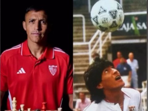 La imagen mostraba, por un lado, una foto actual de Alexis con la indumentaria sevillista y, por otro, una icónica postal de un joven “Bam Bam” también vistiendo la camiseta del club.